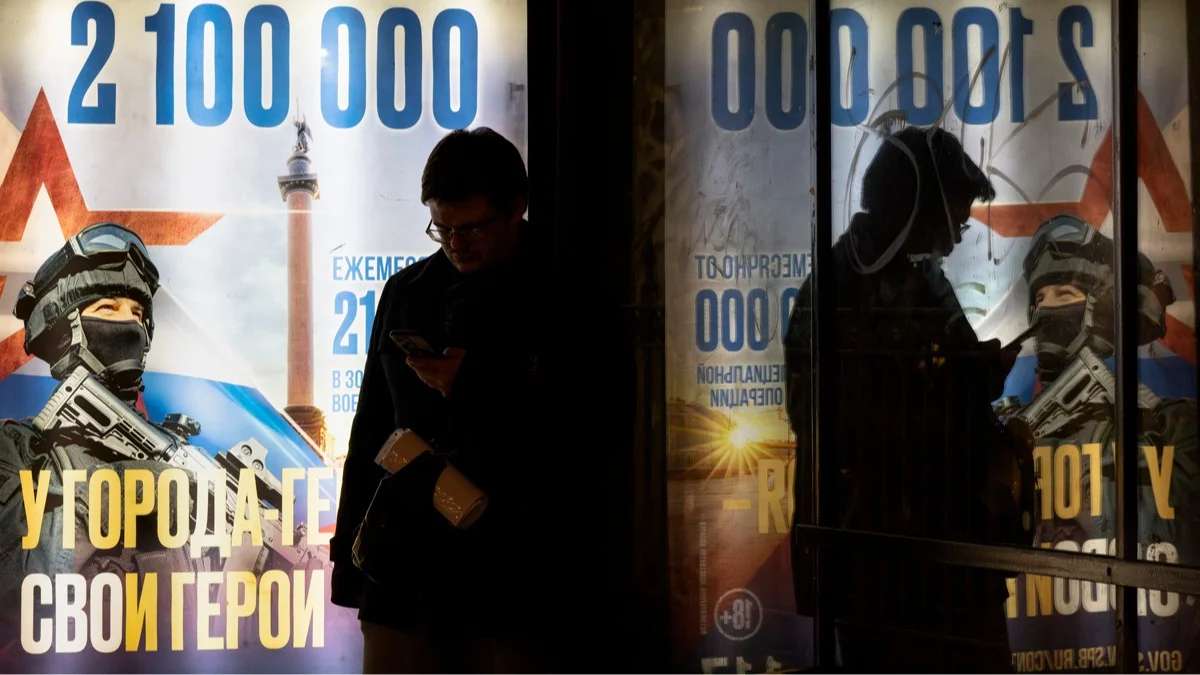 Реклама контрактной службы в российских вооружённых силах на автобусе, Санкт-Петербург, 6 октября 2024 года. Фото: Дмитрий Ловецкий / AP Photo / Scanpix / LETA