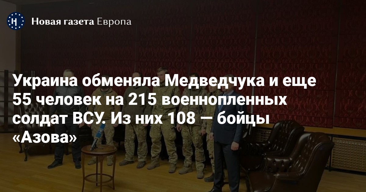 Украина обменяла Медведчука и еще 55 человек на 215 военнопленных солдат ВСУ. Из них 108 — бойцы «Азова»