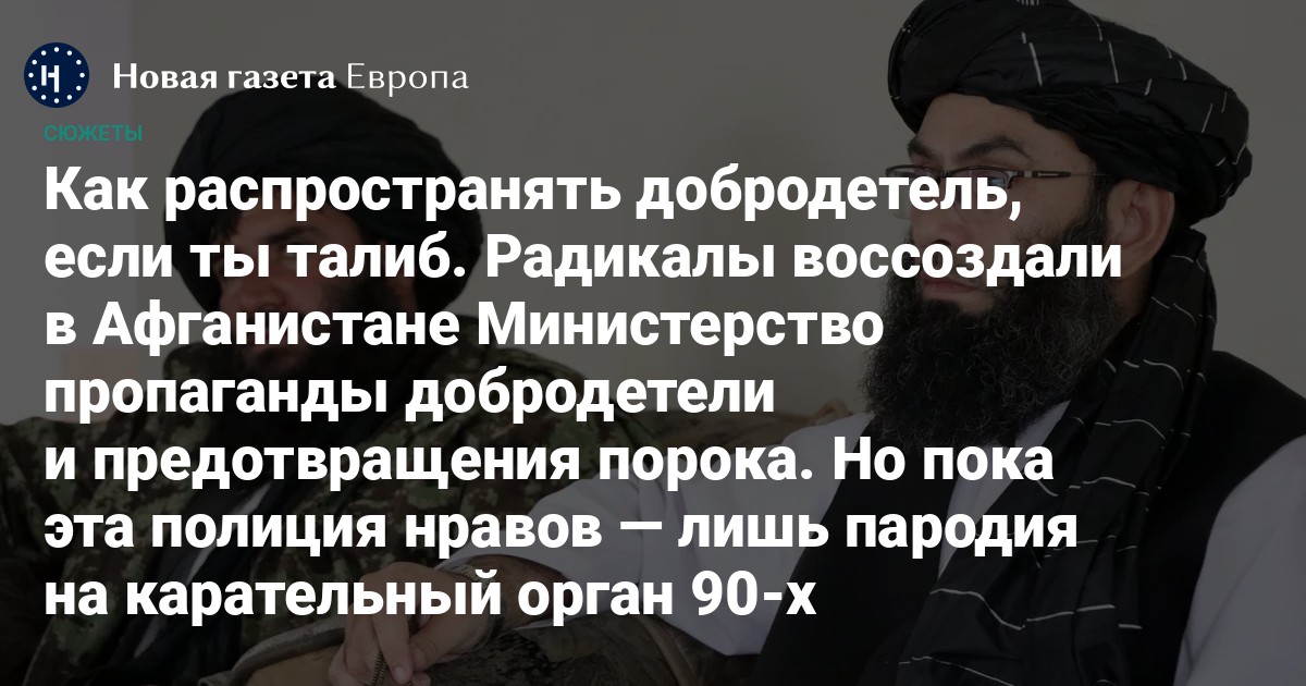 В любом случае, воссозданное «Талибаном» Министерство пропаганды добродетели и предотвращения порока сильно отличается от ведомства, которое уже существовало 20–25 лет назад. Министерство декларирует три ключевые цели: распространение добродетели, предотвращение пороков и выслушивание жалоб населения.