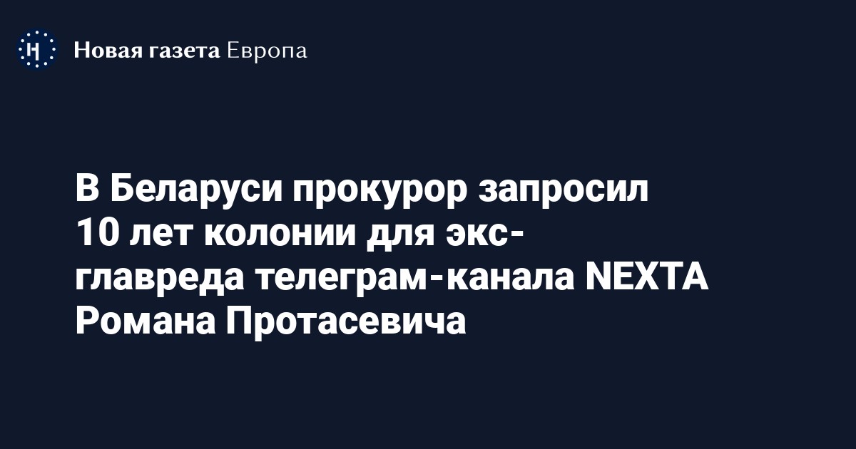 Кроме того, прокуратура попросила суд заочно приговорить основателя NEXTA Степана Путило к 20 годам колонии, а экс-редактора канала Яна Рудика — к 19.