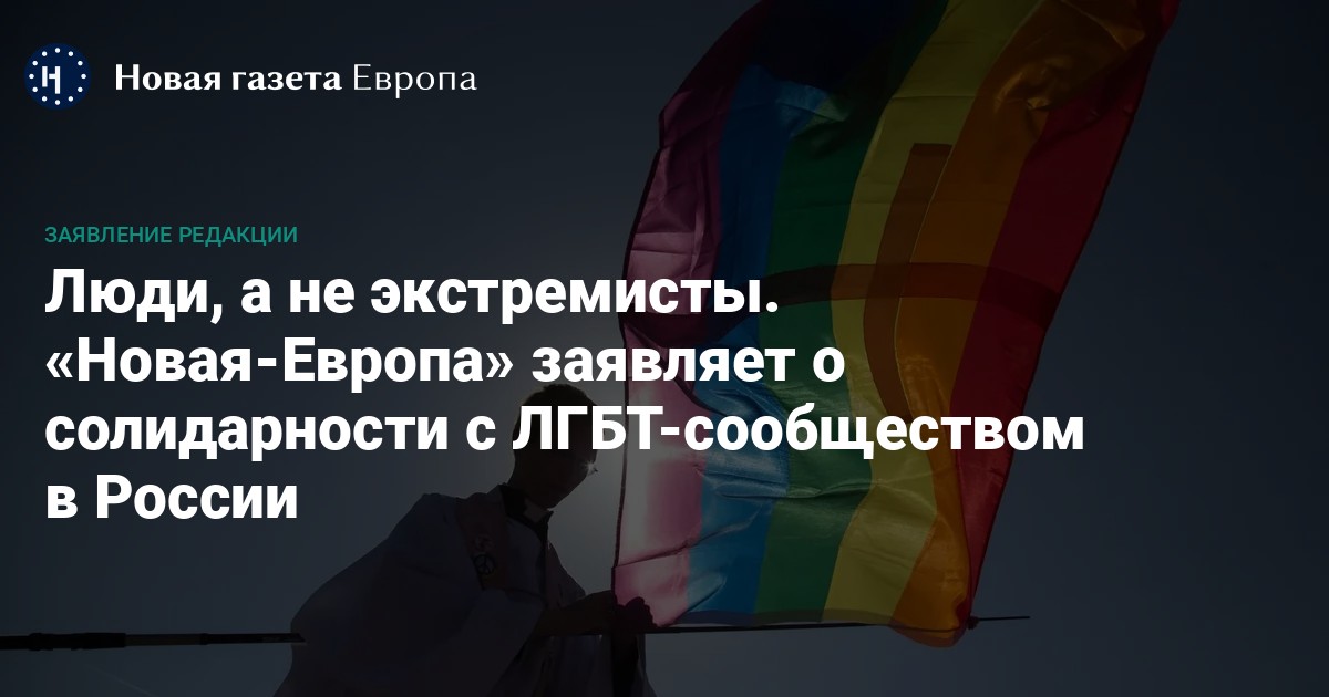Редакция «Новой-Европа» солидарна с ЛГБТ-людьми в России. Мы продолжим делать всё, что от нас зависит, для того чтобы ваши голоса были слышны.