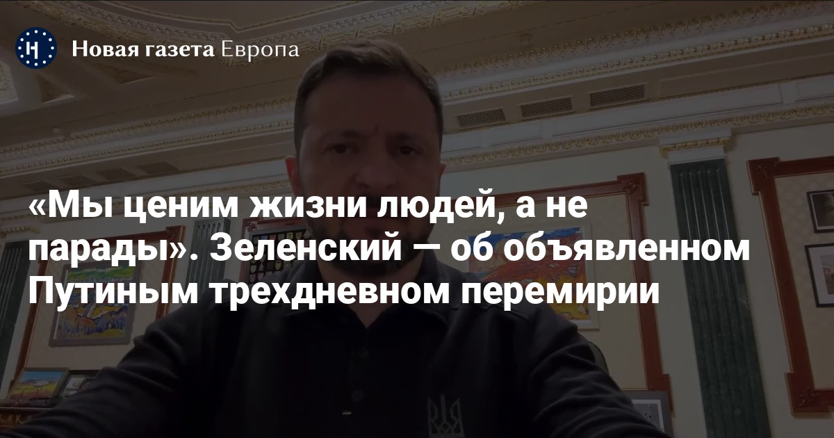 «Мы ценим жизнь людей, а не парады. Именно поэтому мы считаем, что нет причин ждать 8 мая. И огонь должен быть прекращен не несколько дней, чтобы потом снова убивать. Немедленное, полное и безусловное прекращение огня — и по меньшей мере на 30 дней, чтобы было гарантировано и надежно — это то, что может дать основу реальной дипломатии», — заявил Зеленский.