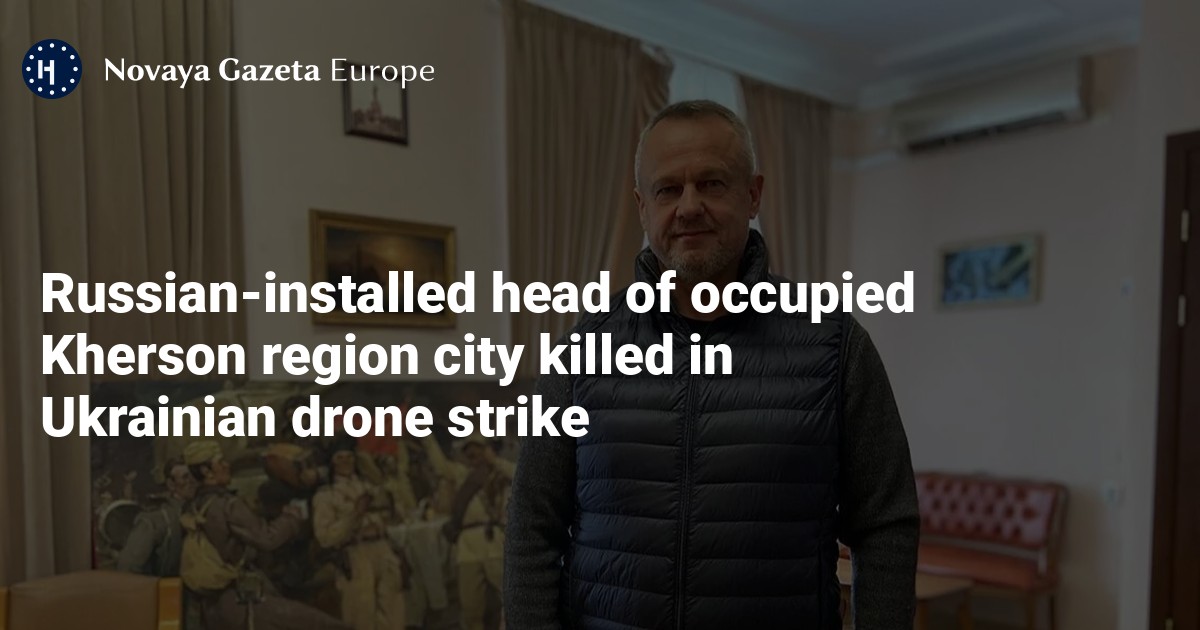 The Kremlin-installed head of Nova Kakhovka, a city in the occupied part of Ukraine’s southern Kherson region, has been killed in a Ukrainian drone strike, Russian occupation authorities in the region announced on Wednesday.