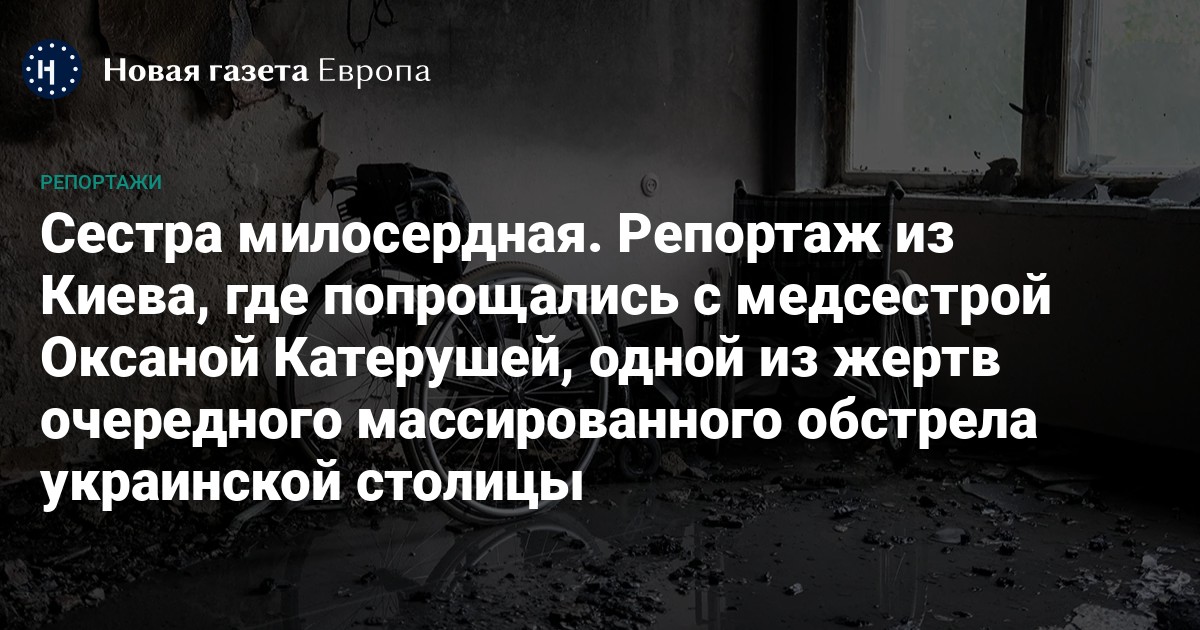 В ночь с субботы на воскресенье, 28 сентября, Киев в который раз уже подвергся комбинированной атаке с воздуха. Ее результатом стали, кроме разрушений и повреждений почти на трех десятках локаций, четверо убитых мирных жителей столицы и семнадцать раненых. Наш собкор в Украине Ольга Мусафирова рассказывает об одной из погибших — медсестре Оксане Катеруше.