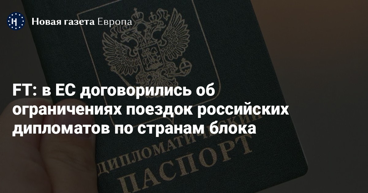 Страны Евросоюза согласились ограничить передвижение российских дипломатов внутри блока. Об этом сообщило Financial Times со ссылкой на источники.