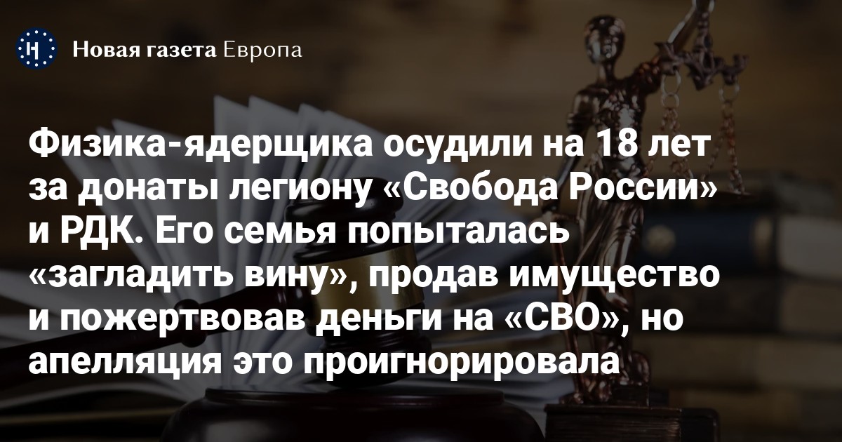 Физика‑ядерщика из нижегородского Сарова Руслана Шадиева приговорили к 18 годам колонии по делу о донатах «Русскому добровольческому корпусу» и легиону «Свобода России». Об этом сообщает «Коммерсант Приволжье». Сам приговор вынесли еще в январе, отмечает «Медиазона».