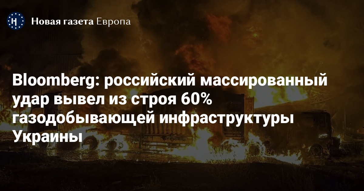 После российского массированного удара в Украине вышла из строя 60% газодобывающей инфраструктуры, пишет Bloomberg.