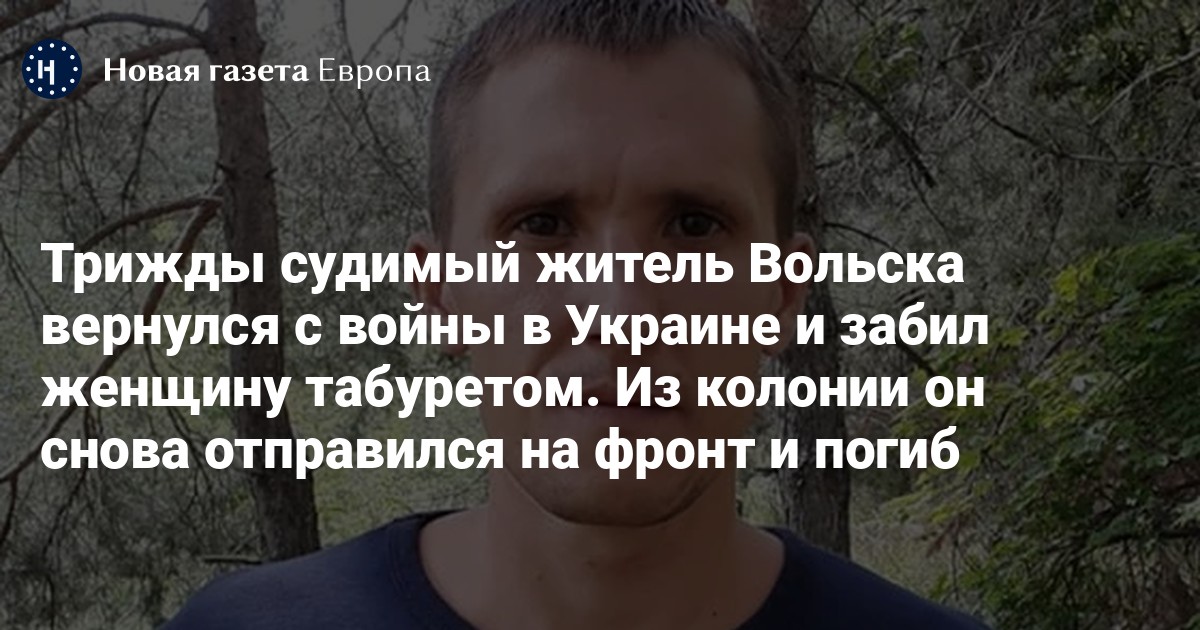 Трижды судимый житель Вольска вернулся с войны в Украине и забил женщину табуретом. Из колонии он снова отправился на фронт и погиб