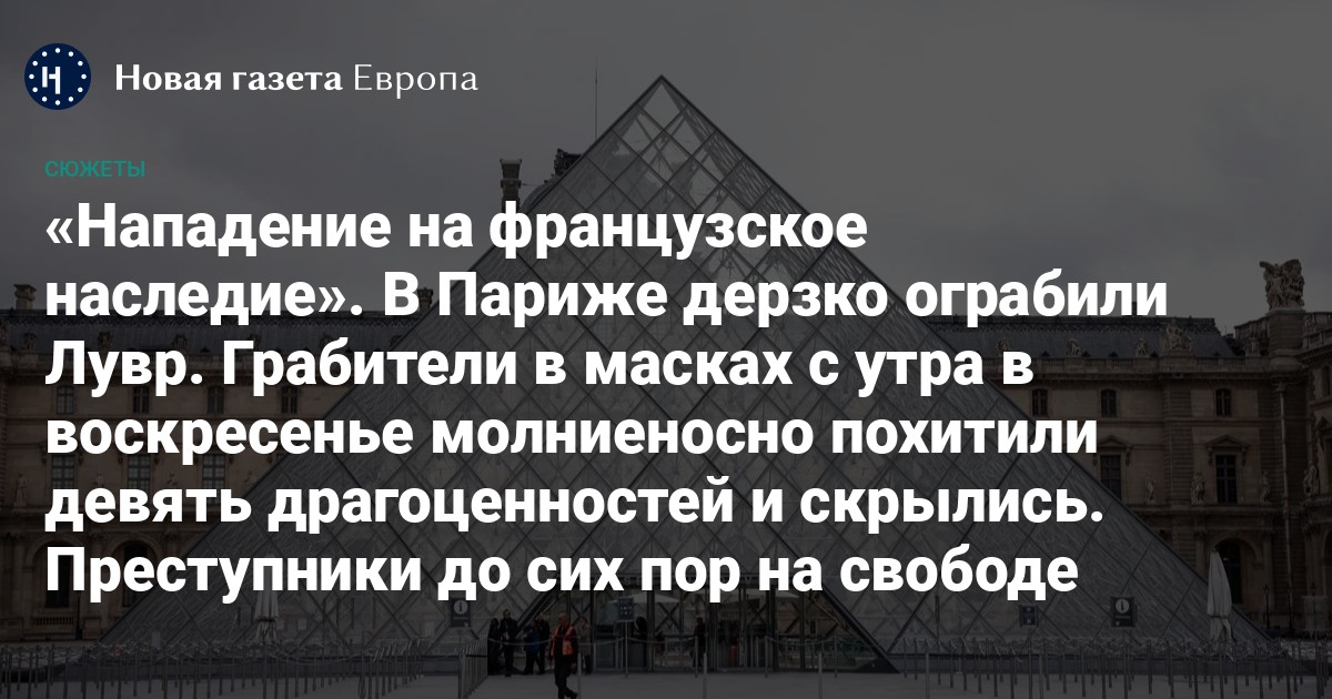 Как происходило ограбление, что о нем говорят французские политики и как такое вообще стало возможным — в материале «Новой-Европа».