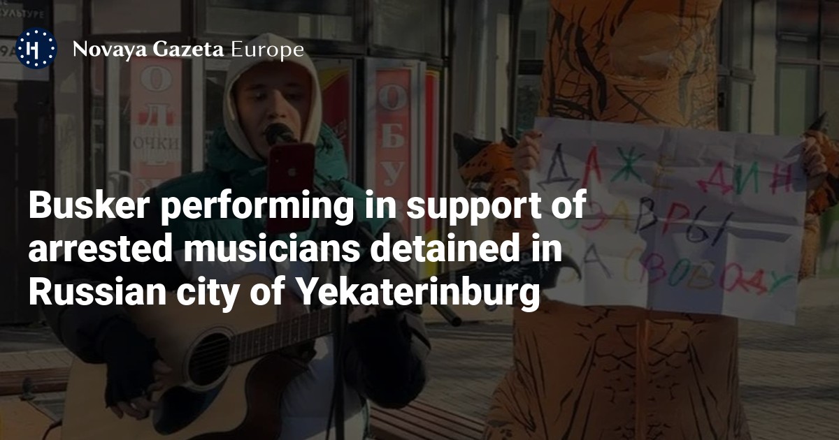 Busker performing in support of arrested musicians detained in Russian city of Yekaterinburg