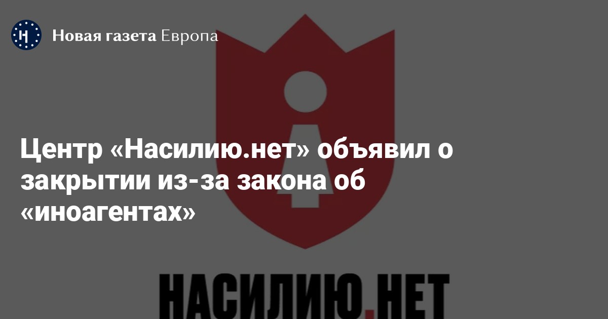 Центр «Насилию.нет» объявил о закрытии из-за закона об «иноагентах»