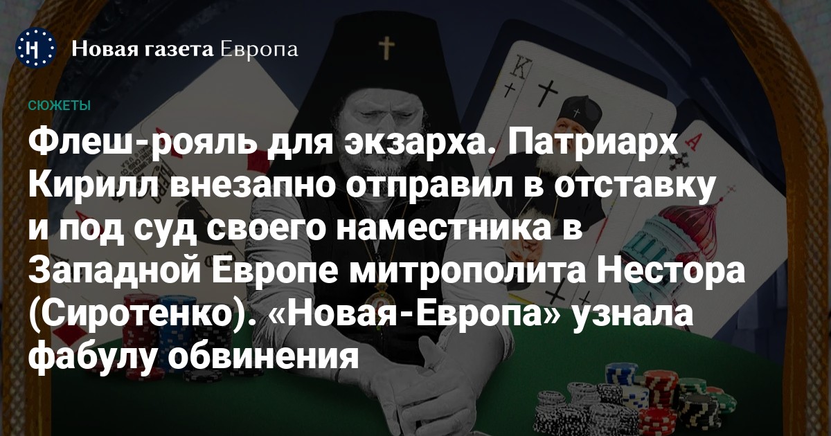 Но судить Нестора собираются не за это. Точнее, раздражение Москвы его «политической» (а на самом деле — христианской, гуманитарной) позицией останется под спудом. Как узнала «Новая-Европа», Кирилл обязал Высший общецерковный суд оценить факты участия бывшего экзарха в международных турнирах по покеру(!) и использование им для этого церковных средств. Сразу два Апостольских правила (а они составляют самую авторитетную часть корпуса канонического права православной церкви) — 42-е и 43-е — предусматривают извержение из сана епископа, который «играет в кости», то есть — на языке того времени — в азартные игры. Более позднее правило (50-е Лаодикийского собора) запрещает клирикам даже посещать места, где проводятся подобные игры. Впрочем, в предреволюционной Российской церкви преферанс считался довольно распространенной формой «поповского досуга», без участия в карточной игре невозможно было завязать нужные связи и завоевать доверие в свете. В современном мире покер рассматривается как спорт, во многих странах на государственном уровне зарегистрированы соответствующие федерации.