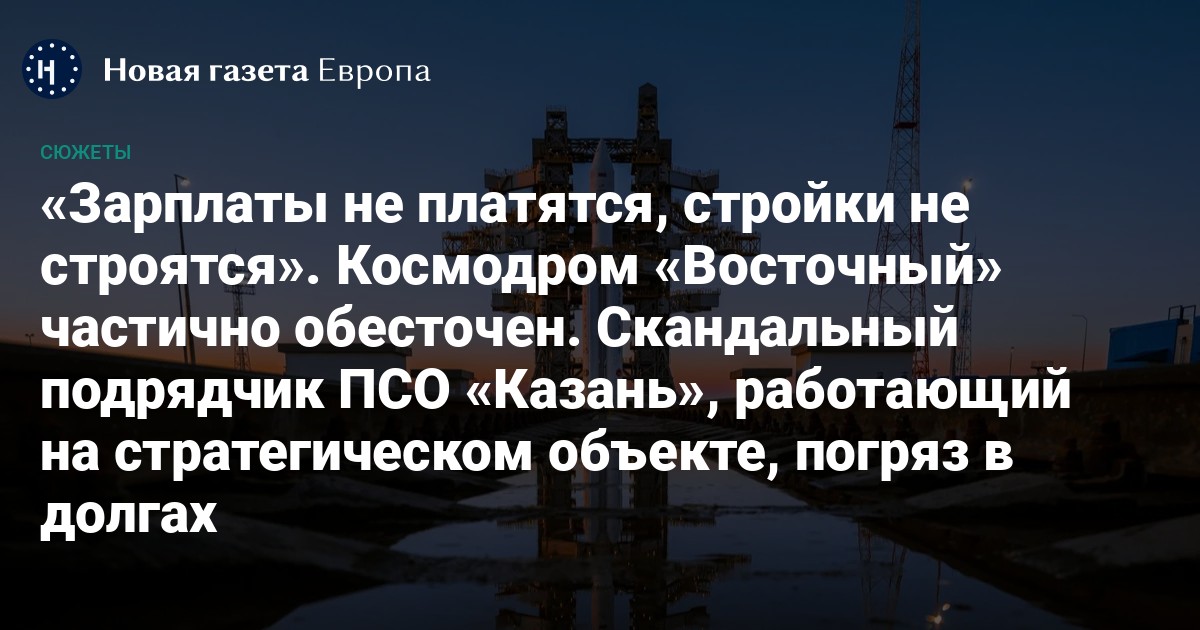 На прошлой неделе стало известно о том, что на космодроме «Восточный» отключили электричество. Обесточены объекты на площадке космического ракетного комплекса «Ангара», на которых работает производственно-строительное объединение (ПСО) «Казань». Дело в том, что генподрядчик «Казань» задолжал «Дальневосточной энергетической компании» (ДЭК) 51 миллион рублей и уже давно игнорирует просьбы оплатить счета.