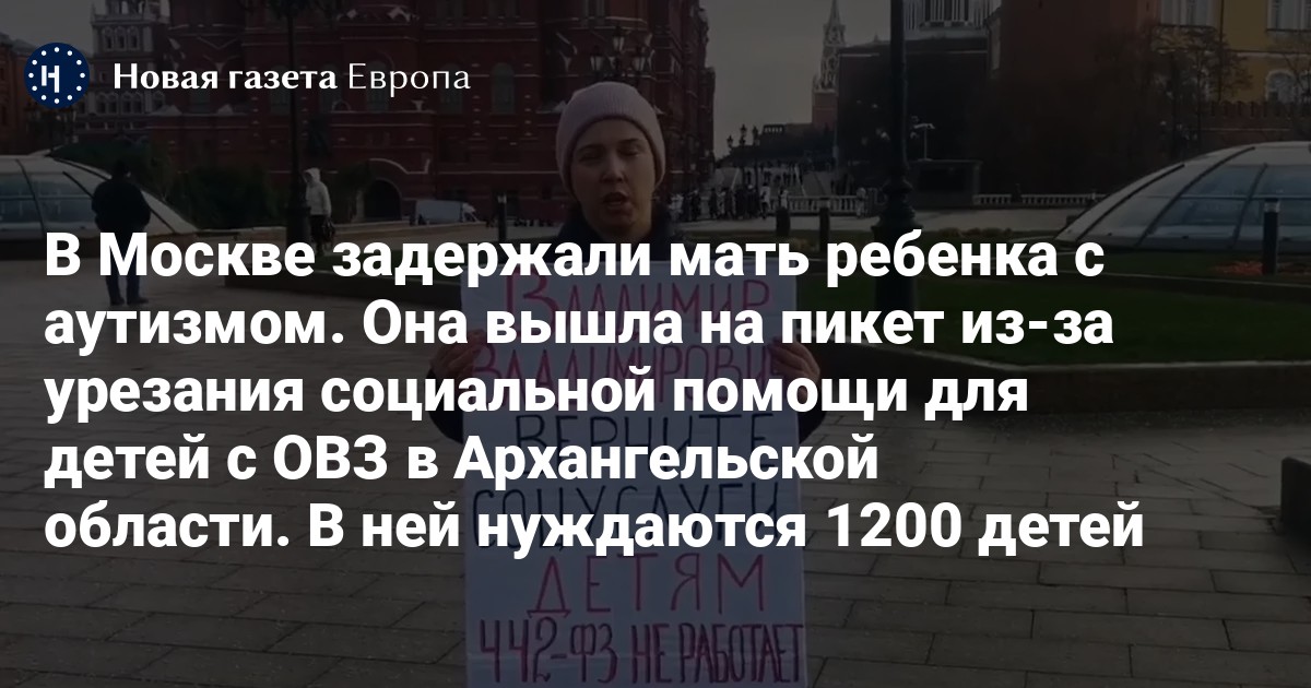 В Москве задержали мать ребенка с аутизмом. Она вышла на пикет из-за урезания социальной помощи для детей с ОВЗ в Архангельской области