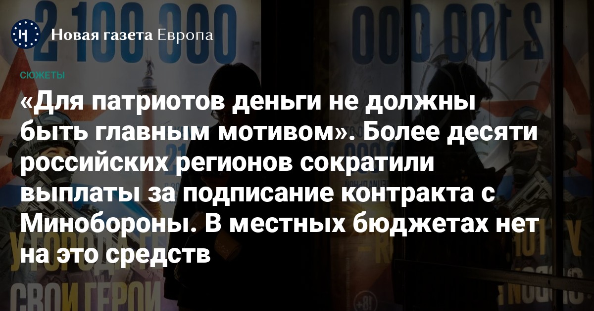 В октябре сразу несколько российских регионов заявили, что снижают выплаты контрактникам до минимальной суммы — 400 тысяч рублей. И сокращение это весьма значительно — в 4–5, а кое-где и в семь раз.