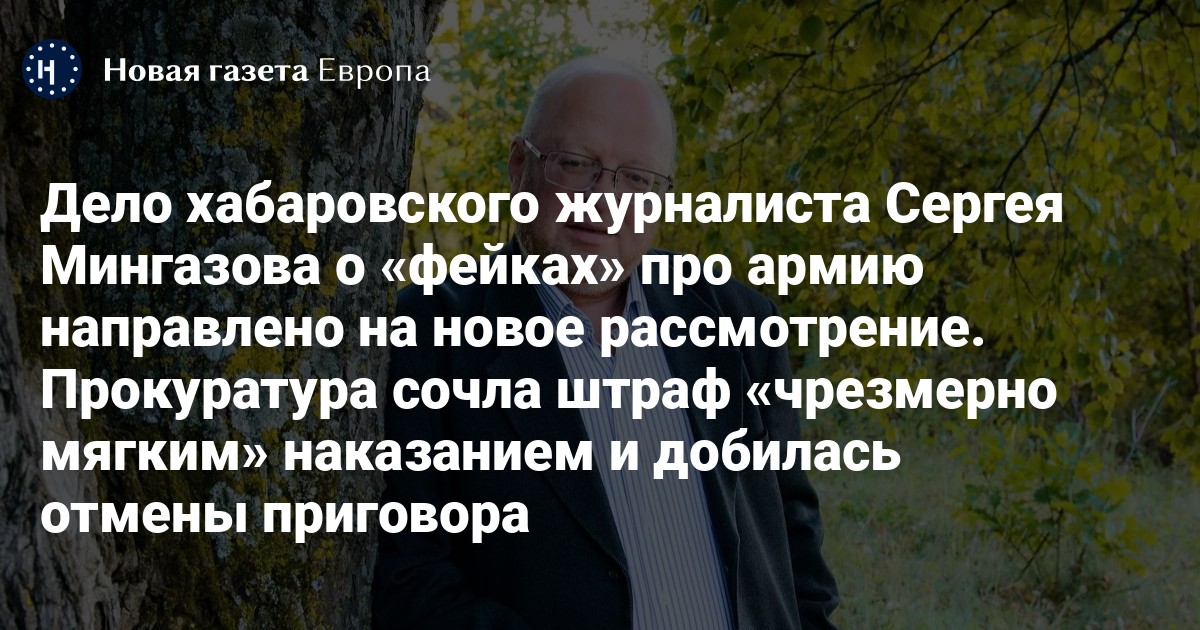 Кассационная инстанция отменила приговор журналисту Сергею Мингазову по делу о «фейках» про армию (п. «д» ч. 2 ст. 207.3 УК) и направила материалы на новое рассмотрение в Краснофлотский районный суд Хабаровска. Об этом сам Мингазов рассказал изданию «Говорит НеМосква».