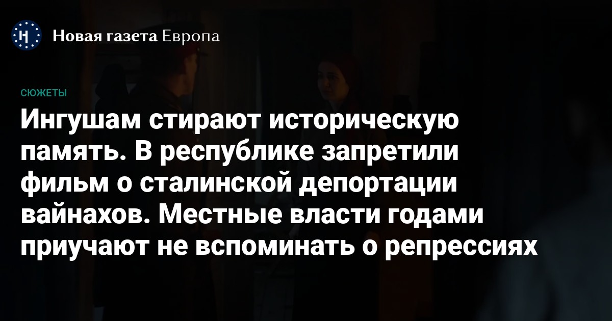 Министерство культуры Ингушетии не разрешило провести в республике премьерный показ фильма о возвращении ингушей на родину после депортации 1944 года. Ведомство также препятствует участию фильма в российских кинофестивалях. Об этом со ссылкой на своего источника сообщило региональное издание «Фортанга».