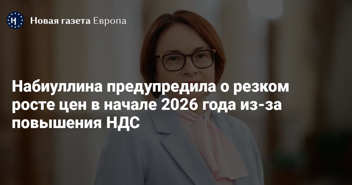 Набиуллина предупредила о резком росте цен в начале 2026 года из-за повышения НДС