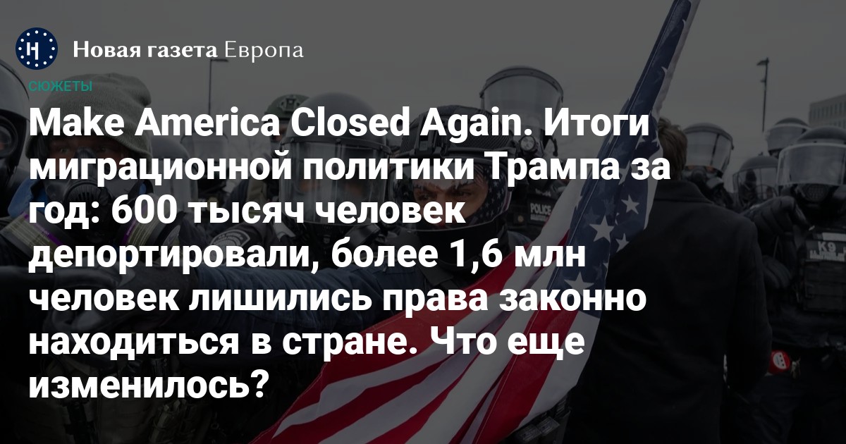 В результате в 2025 году США потеряли больше иммигрантов, чем приняли, — ничего подобного не было как минимум полвека. О том, что предпринял Трамп для ограничения как нелегальной, так и легальной миграции и чем это грозит Соединенным Штатам — в материале «Новой газеты Европа».