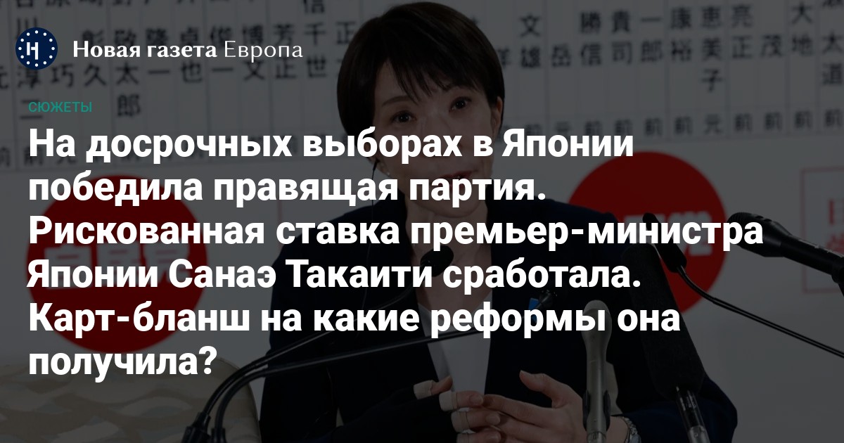На досрочных выборах в Японии победила правящая партия. Рискованная ставка премьер-министра Японии Санаэ Такаити сработала