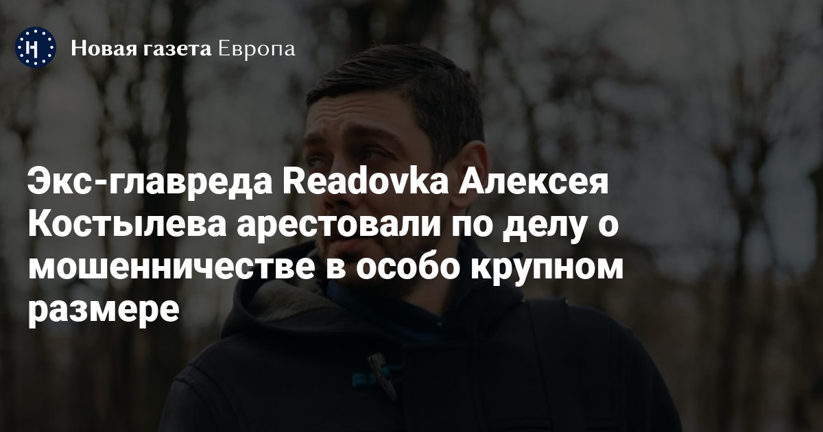 Бывшего главного редактора пропагандистского издания Readovka Алексея Костылева отправили в СИЗО до 25 апреля по делу о мошенничестве в особо крупном размере (ч. 4 ст. 159 УК). Об этом сообщила «Медиазона».