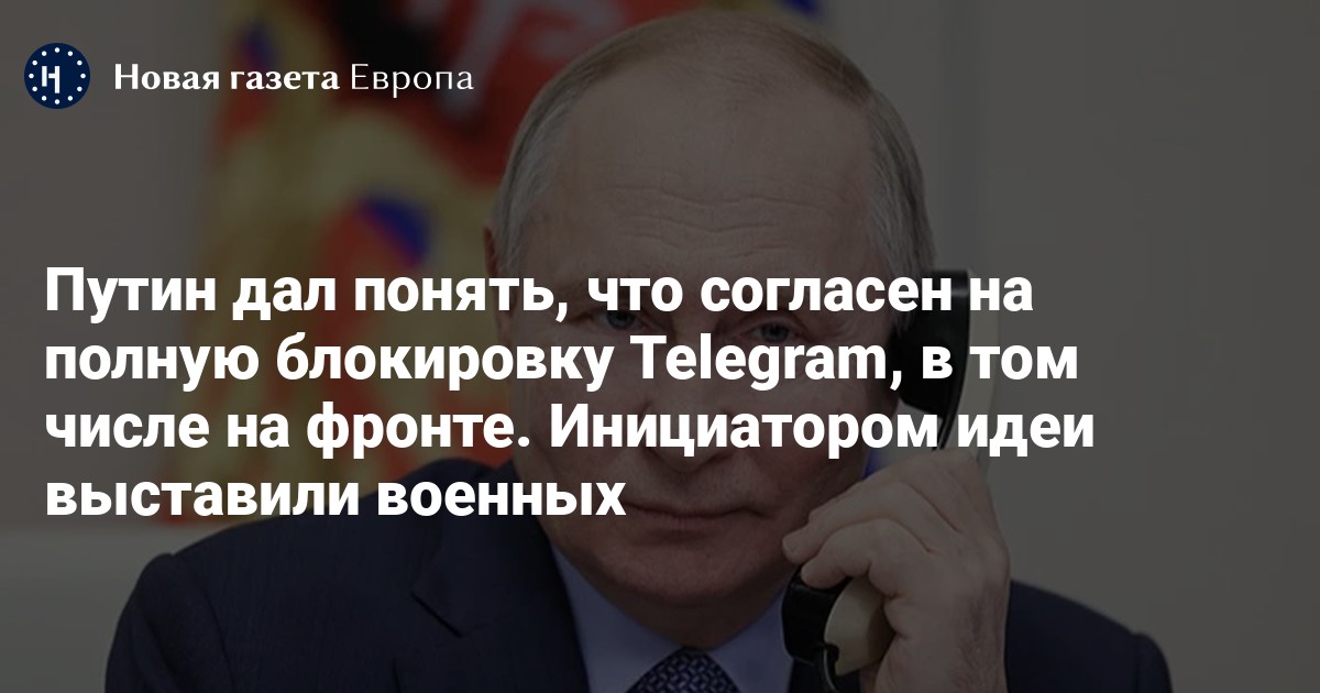 Путин дал понять, что согласен на полную блокировку Telegram, в том числе на фронте
