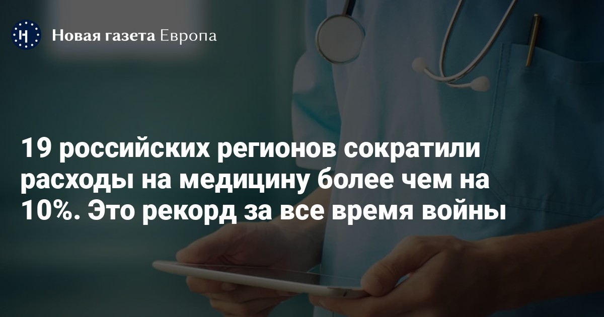 В 2026 году почти четверть региональных бюджетов (19 из 82) заметно (как минимум на 10%) сократили расходы на здравоохранение. Об этом пишут «Важные истории».