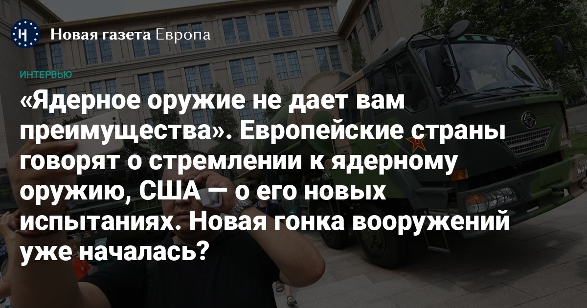 — Начну с гонки вооружений. Это понятие обычно используется для описания ситуации, когда страны, у которых ядерное оружие уже есть, наращивают свои арсеналы. Сейчас этот процесс не то чтобы уже идет, но есть указания на то, что может начаться. В США обвиняют Китай в том, что он наращивает свой ядерный арсенал. И внутри Штатов идет большая дискуссия — нужно ли теперь американцам наращивать свой ядерный арсенал?