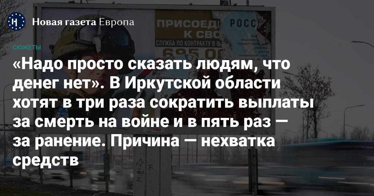 В Иркутской области хотят в три раза сократить выплаты за смерть на войне и в пять раз — за ранение. Причина — нехватка средств
