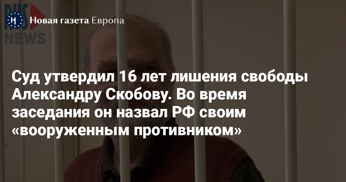 Суд утвердил 16 лет лишения свободы Александру Скобову. Во время заседания он назвал РФ своим «вооруженным противником»