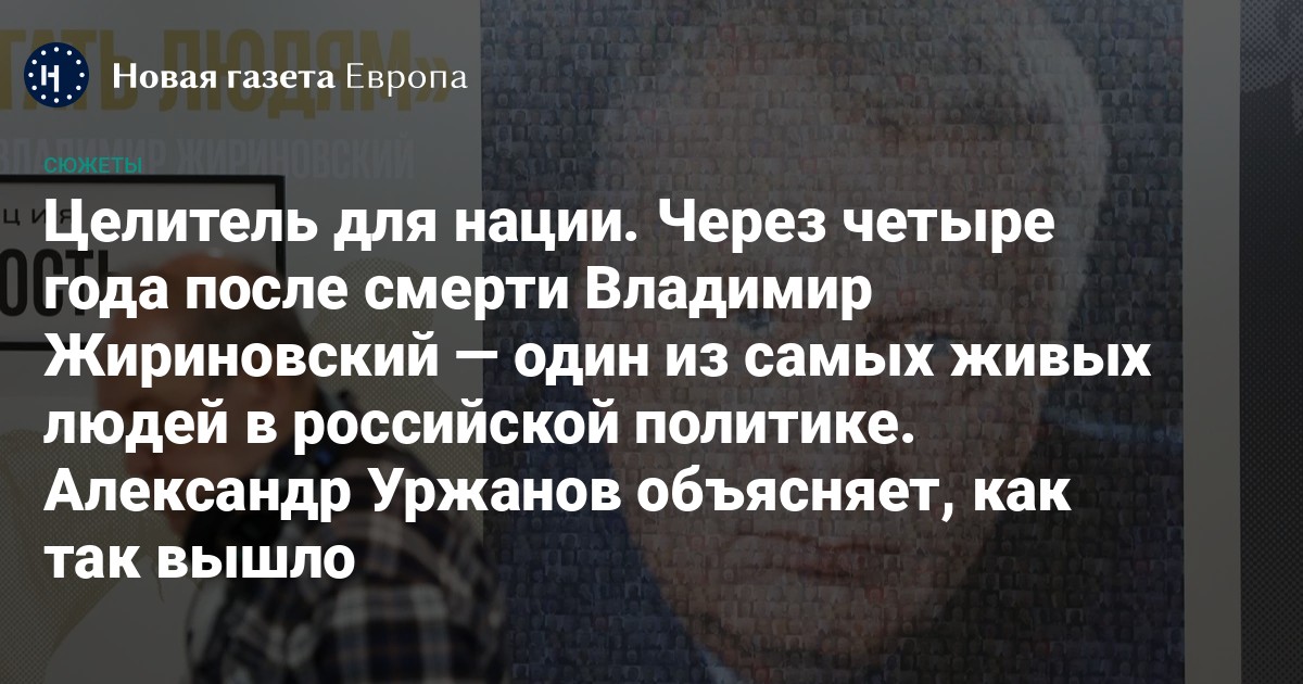 В 2024 году, накануне пятых президентских выборов Путина, Алексей Венедиктов в эфире «Живого гвоздя» обсуждал вместе с соведущими, кто еще будет на этот раз в избирательном бюллетене: «Всё ожидаемо. Жириновский, Даванков и Харитонов будут зарегистрированы, всё ожидаемо». К этому моменту Жириновский был почти два года как мертв, но заметили оговорку не сразу. Он оказался настолько нужен российской политике, что ему пришлось участвовать в выборах президента в седьмой раз, — с того света.